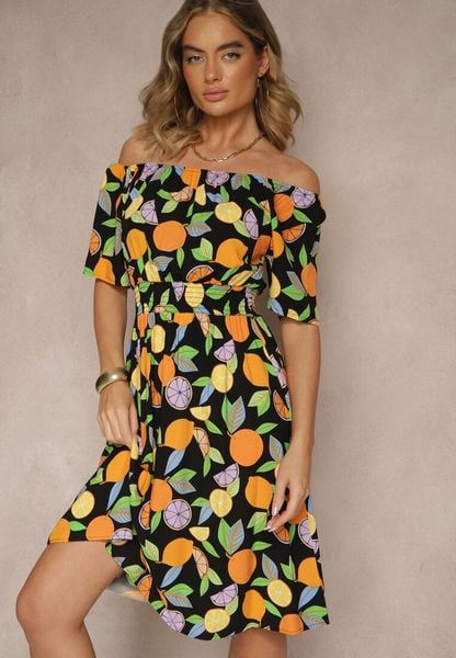 Czarna Sukienka Typu Hiszpanka z Bawełną ze Wzorem Cytrusów Aprona