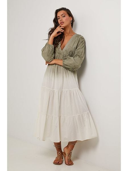 Le Monde du Lin Sukienka w kolorze zielono-białym rozmiar: 36/38