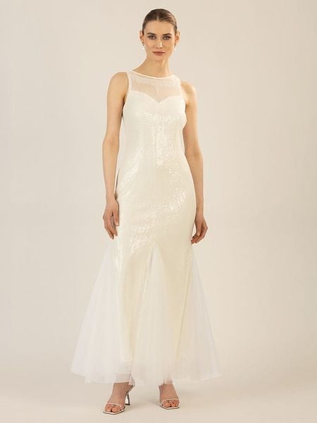 – ramiączka: szerokie- dekolt: okrągły- zapięcie: suwak na plecach- detale: cekiny- krój: rozkloszowany- look: jednokolorowy
