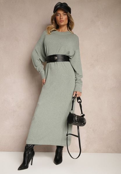 Miętowa Pudełkowa Sukienka z Dzianiny z Wiskozą Maziala