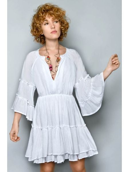 – czysta bawełna- dekolt: V- krój rękawów: rozszerzany do dołu- dolny brzeg: z falbankami- krój: rozkloszowany- look: jednokolorowy
