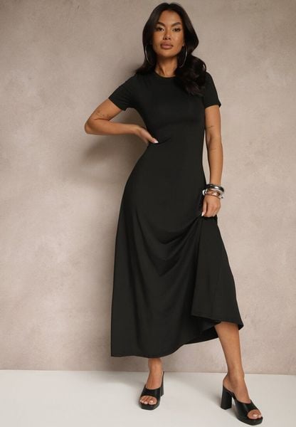 Czarna Taliowana Sukienka z Krótkim Rękawem Liranisea