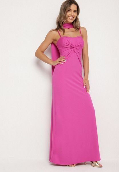 Fuksjowa Taliowana Sukienka Ozdobiona Szalem i Marszczeniem Melovea