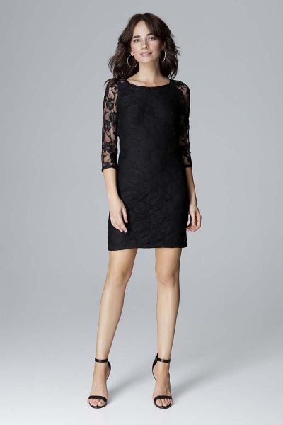 Czarna Dopasowana Koronkowa Sukienka z Wycięciem na Plecach