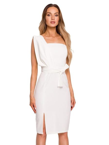 – dekolt: Carmen- zapięcie: suwak na plecach- krój rękawów: na jedno ramię – dolny brzeg: z rozcięciem – w talii wiązanie: tak – krój: taliowany – look: jednokolorowy