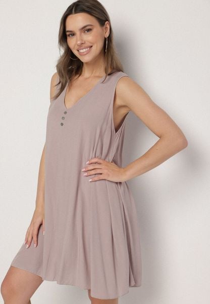 Jasnoszara Sukienka o Rozkloszowanym Kroju na Szerokich Ramiączkach z Guzikami Jenovira