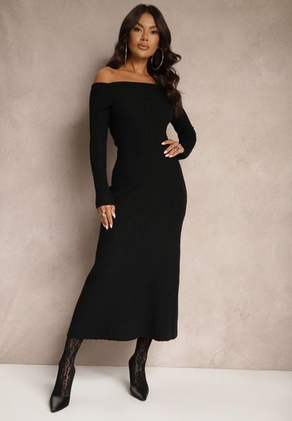 Czarna Sukienka z Wiskozą Ozdobiona Wywiniętym Dekoltem Siarielis