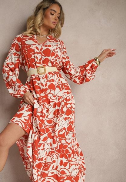 Czerwona Pudełkowa Sukienka z Wiskozy w Kwiatowy Print Ridielia