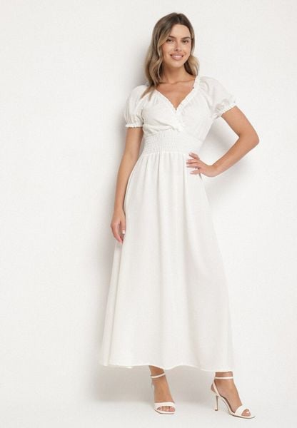 Biała Sukienka Ozdobiona Bufkami Dolinossa