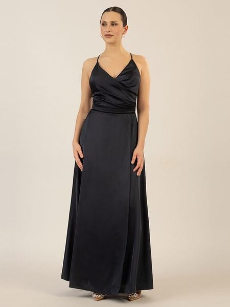 – ramiączka: wąskie- dekolt: V- zapięcie: wiązanie na plecach- dolny brzeg: z rozcięciem- detale: ozdobna zakładka- krój: litera A- look: jednokolorowy, imitacja satyny