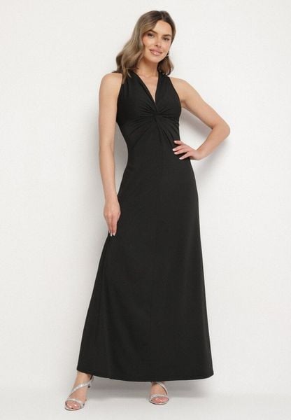 Czarna Rozkloszowana Sukienka Bez Rękawów z Wiskozą Zdobiona Marszczeniem Folenissa