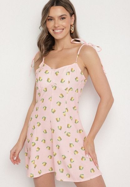 Różowa Sukienka na Wiązanych Ramiączkach w Cytryny Efrunea