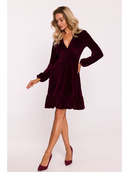 made of emotion Aksamitna sukienka w kolorze ciemnoczerwonym rozmiar: S