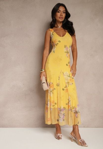 Żółta Sukienka Siateczkowa w Kwiaty Milosea