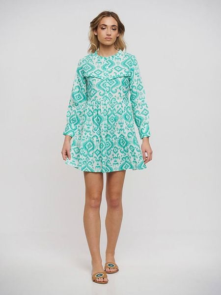 – czysta bawełna- dekolt: okrągły- zapięcie: skrócona listwa guzikowa- rękaw: bufiasty- krój: rozkloszowany- wzór: na całości