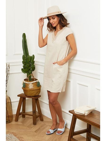 Le Monde du Lin Lniana sukienka w kolorze beżowym rozmiar: 38/40