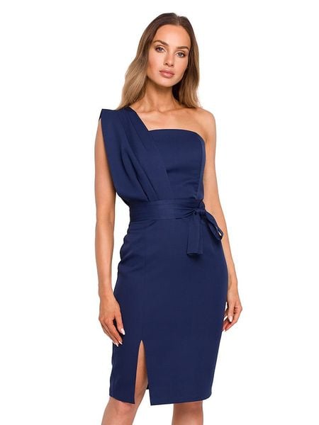 – dekolt: Carmen- zapięcie: suwak na plecach- krój rękawów: na jedno ramię – dolny brzeg: z rozcięciem – w talii wiązanie: tak – krój: taliowany – look: jednokolorowy