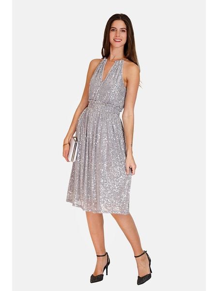 ASSUILI Sukienka cekinowa w kolorze srebrnym rozmiar: 42