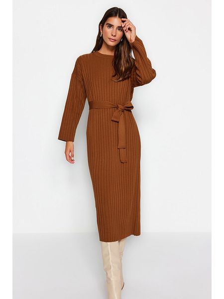 trendyol Sukienka dzianinowa w kolorze brązowym rozmiar: S