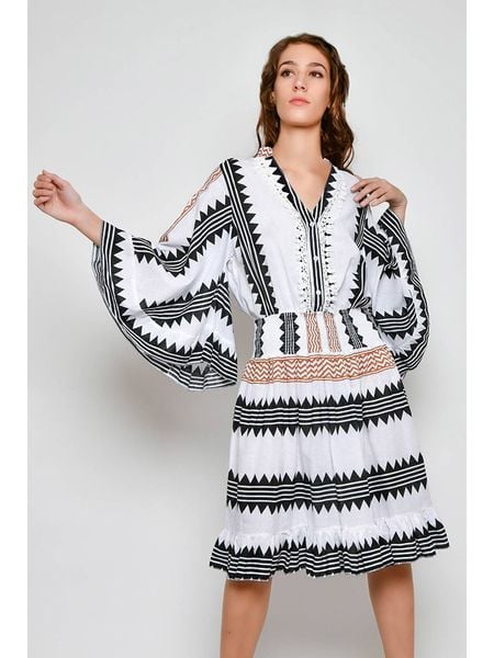– czysta bawełna- dekolt: z rozcięciem- zapięcie: skrócona listwa guzikowa- krój rękawów: rozszerzany do dołu- krój: litera A- wzór: na całości