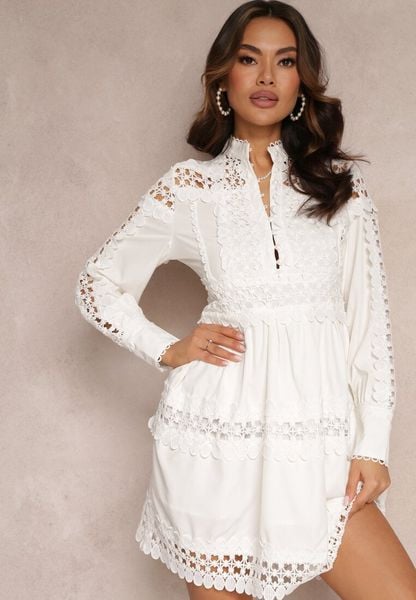 Biała Koronkowa Sukienka z Ozdobnym Dekoltem Sweeney