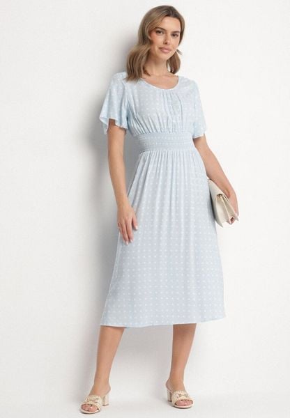 Jasnoniebieska Sukienka z Bawełny Rozkloszowana w Kropki Toliennea