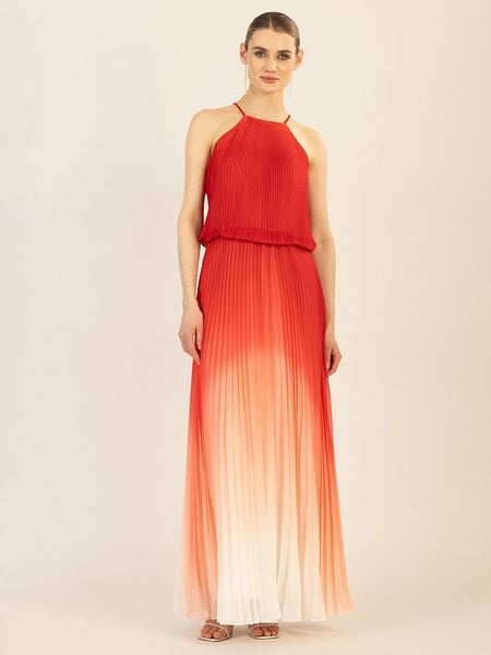 – ramiączka: wąskie- dekolt: okrągły- zapięcie: guzik na plecach- talia: elastyczna- krój: litera A- wzór: przejście kolorów- look: plisy