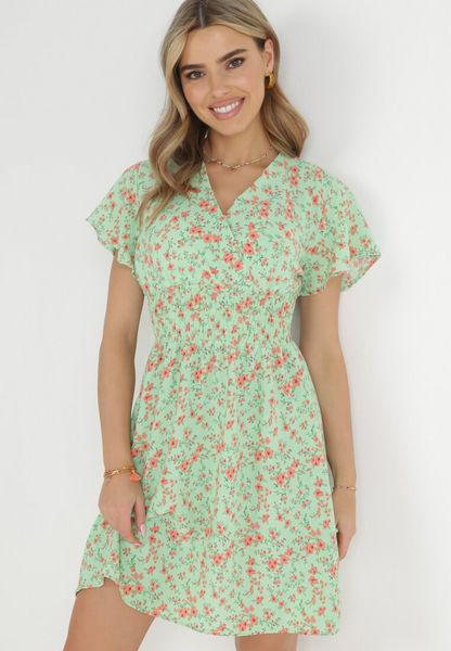 Zielona Sukienka Mini z Gumką w Pasie i Kopertowym Dekoltem z Wiskozy Littlestar