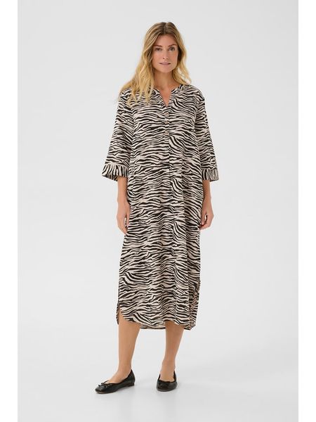 Kaffe Lniana sukienka w kolorze kremowo-czarnym rozmiar: S/M