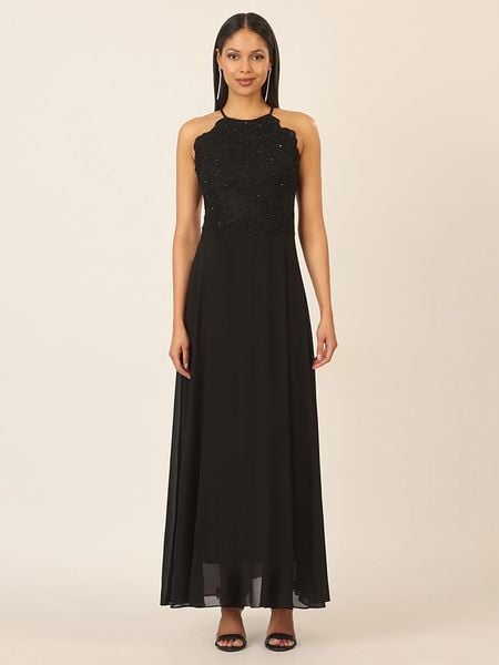 – ramiączka: wąskie- dekolt: okrągły- zapięcie: suwak na plecach- detale: ozdobne koraliki, szydełkowana koronka- krój: litera A- look: jednokolorowy