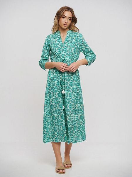 Sukienka damska midi w drobną kratkę z wiązaniem na plecach turkusowa Tiko 302