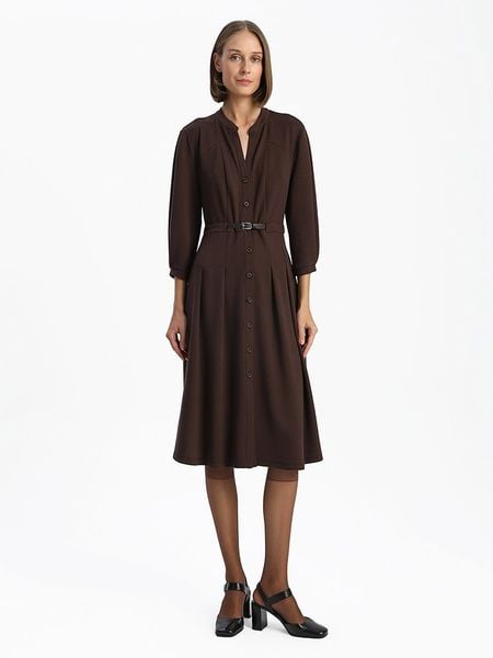 – dekolt: z rozcięciem- zapięcie: listwa guzikowa- zakończenie rękawów: guzik- długość rękawa: 3/4- przytwierdzony pasek: tkanina- krój: rozkloszowany- look: jednokolorowy