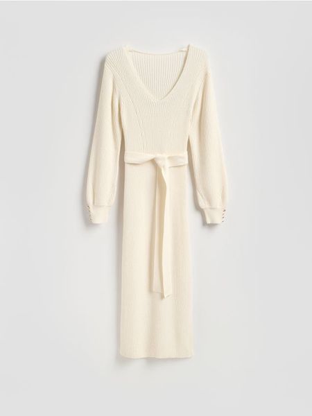 Sukienka z wełną – złamana biel