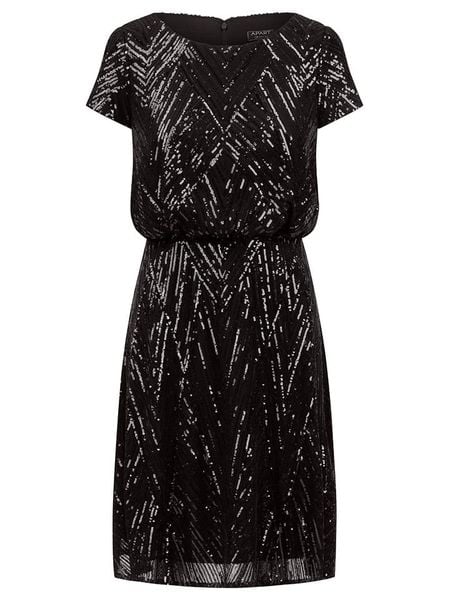 – dekolt: okrągły- zapięcie: suwak na plecach- talia: elastyczna- detale: cekiny- krój: litera A- look: jednokolorowy