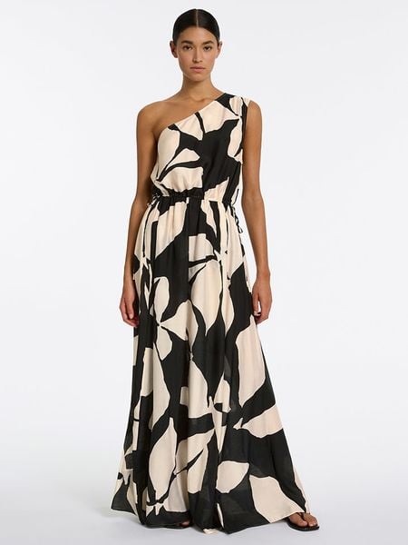 – z dodatkiem jedwabiu- krój rękawów: na jedno ramię- talia: ściągacz tunelowy- krój: taliowany- wzór: na całości