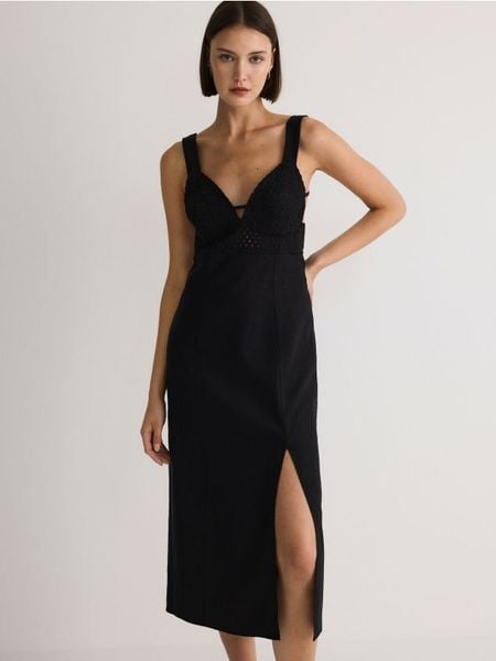 Sukienka z lnem – czarny