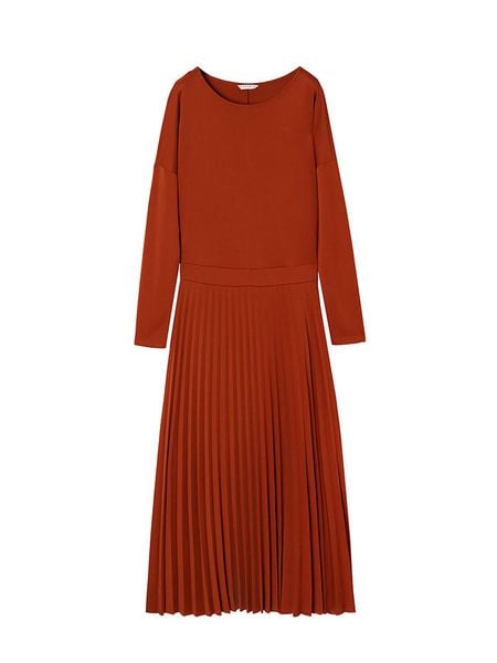 – dekolt: łódka- detale: plisy- krój: litera A- look: jednokolorowy