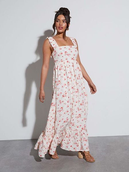 – ramiączka: szerokie- dekolt: karo- zapięcie: wiązanie na plecach- dolny brzeg: z falbankami- krój: luźny- wzór: kwiatowyUwaga: Przy wyborze właściwego wariantu zaleca się korzystanie z tabeli rozmiarów.