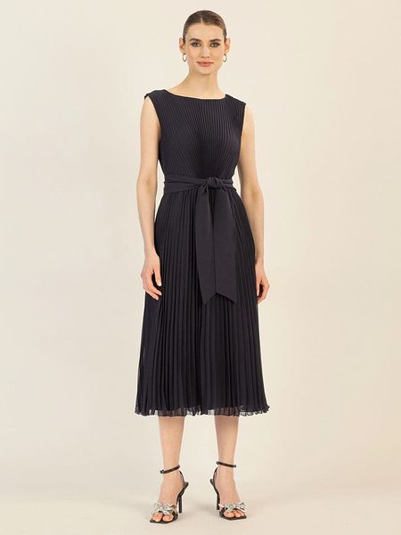 – ramiączka: szerokie- dekolt: okrągły- zapięcie: suwak na plecach- w talii wiązanie: tak- krój: prosty- look: jednokolorowy, plisy