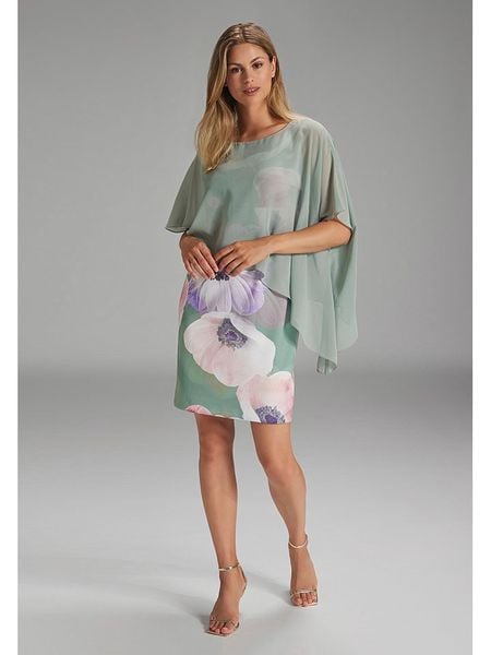 – dekolt: okrągły- zapięcie: suwak na plecach- krój: taliowany- wzór: kwiatowy- look: warstwy