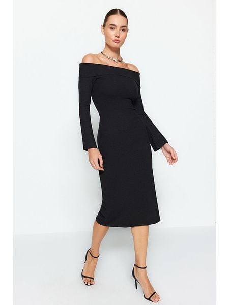 – dekolt: carmen- dolny brzeg: z rozcięciem- krój: wąski- look: jednokolorowyUwaga: Przy wyborze właściwego wariantu zaleca się korzystanie z tabeli rozmiarów.