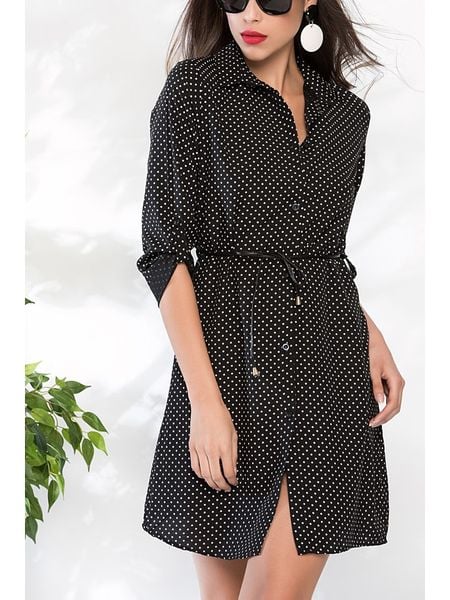 – kołnierz: kent- zapięcie: listwa guzikowa- zdejmowany pasek: skóra syntetyczna- krój: prosty- wzór: kropki