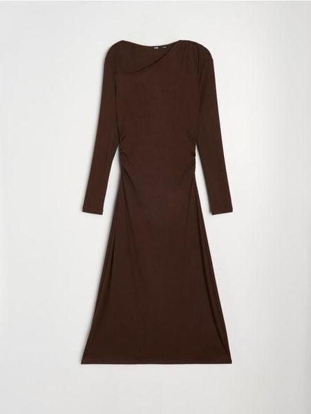 Sinsay – Sukienka maxi z asymetrycznym dekoltem – brązowy –