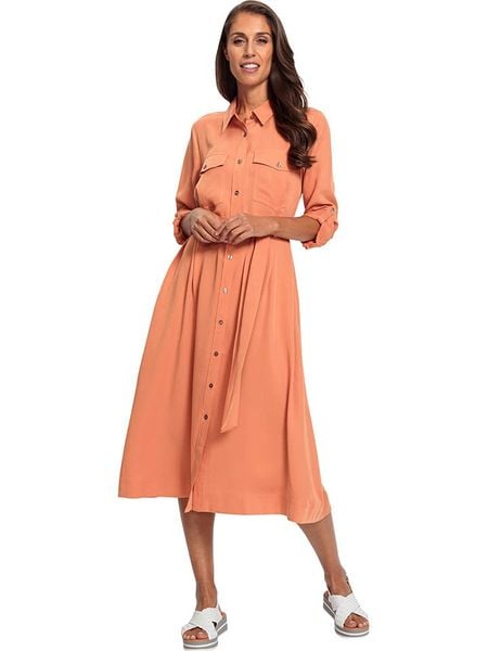 – czysty lyocell- kołnierz: kent- zapięcie: listwa guzikowa- kieszenie: na piersi- zakończenie rękawów: patka i guzik- szlufki na pasek: tak- zdejmowany pasek: tkanina- krój: luźny- look: jednokolorowy