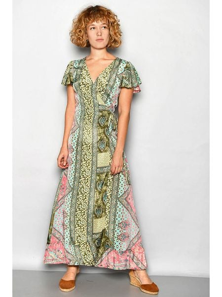– dekolt: V- krój rękawów: motylek – w talii wiązanie: tak – krój: taliowany – wzór: na całości
