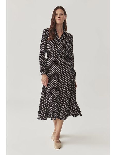 – czysta wiskoza- kołnierz: kent- zapięcie: skrócona listwa guzikowa- krój: rozkloszowany- wzór: na całości