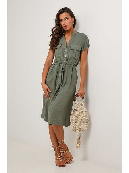 Le Monde du Lin Lniana sukienka w kolorze khaki rozmiar: 40/42