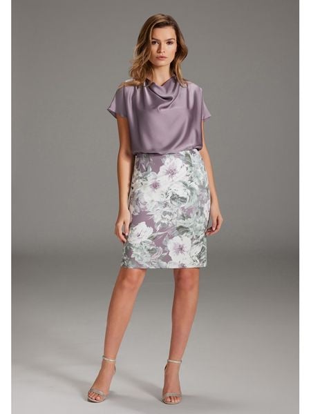 – dekolt: kaskada- zapięcie: suwak na plecach- talia: elastyczna- krój: prosty- wzór: mix