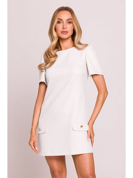 – dekolt: łódka- zapięcie: suwak na plecach- kieszenie: z patkami- krój: litera A- wzór: melanżowy