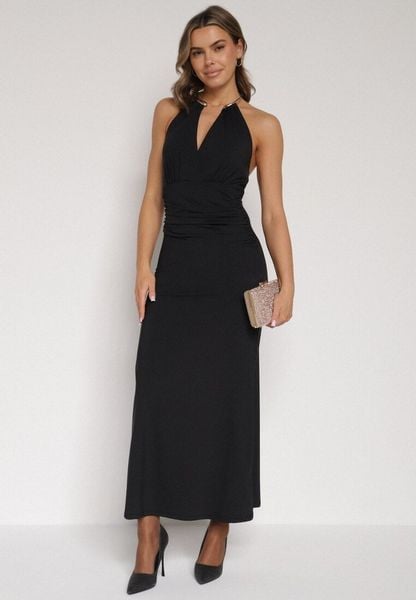 Czarna Sukienka Koktajlowa z Dekoltem Halter i Odkrytymi Plecami Sewrina